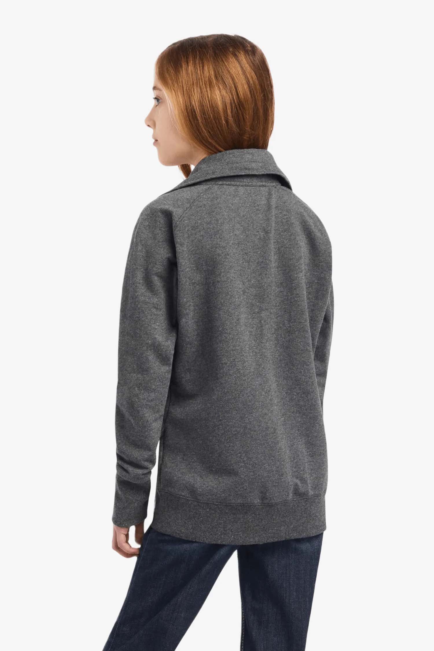 Gosig tröja från Ariat gjord av ett mjukt ekologiskt bomullstyg. Hög krage som ger en skön och varm känsla. Snyggt dekorerad med Ariats logo framtill. Två öppna fickor på framsidan.