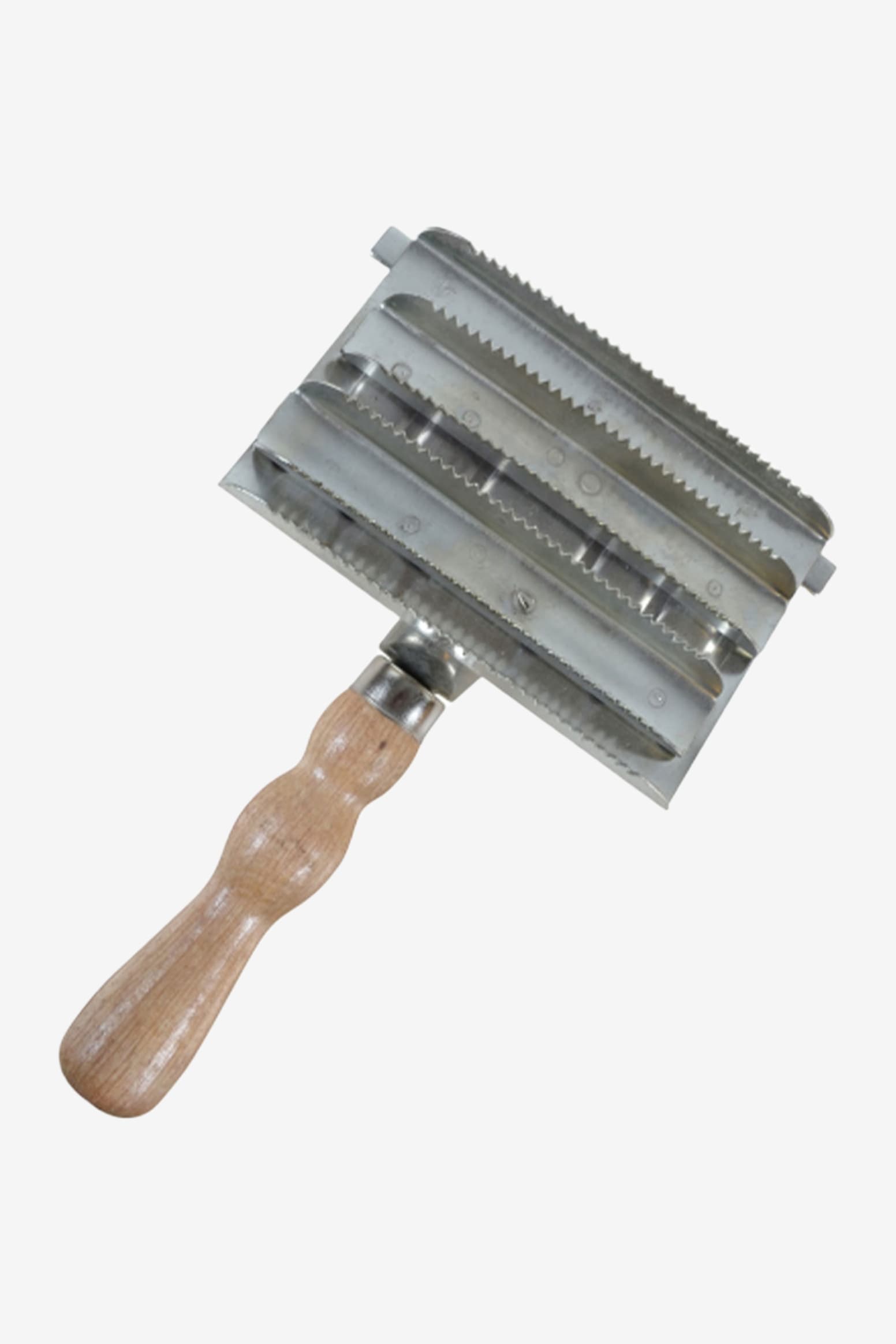 Traditionell ryktskrapa i metall med greppvänligt skaft av bokträ. Håller borstar rena från damm och smuts. Används traditionellt tillsammans med ryktborsten för att dra av överflödigt damm och stöv som fastnar på borsten. Efter varje borsttag drar man ryktborsten på ryktskrapan. En extra rad, med större tänder, för manvård. Går även bra att använda ryktskrapan som den är på riktigt tjocka och täta pälsar, speciellt under fällningsperioder eller vid lerig päls.
