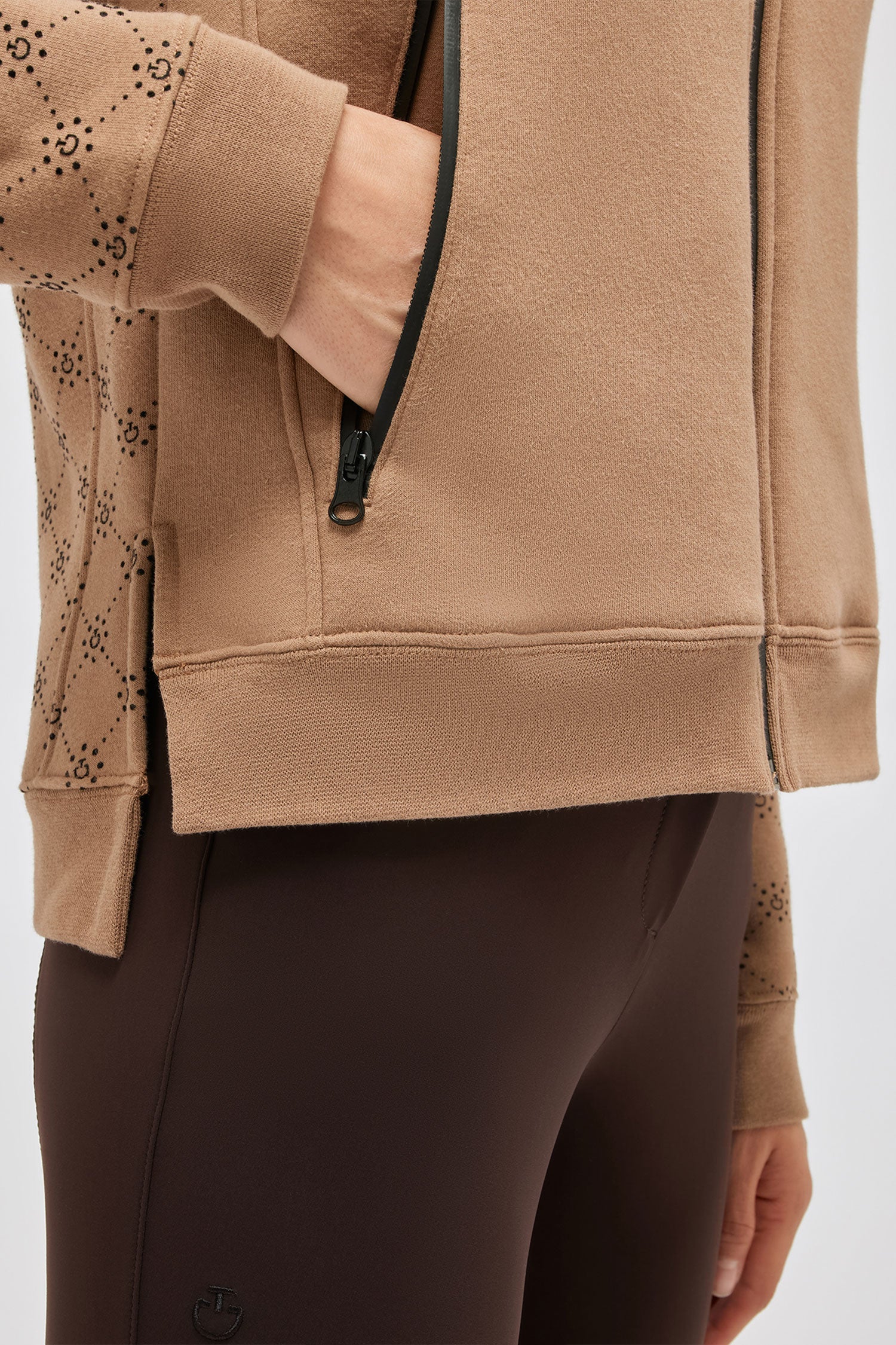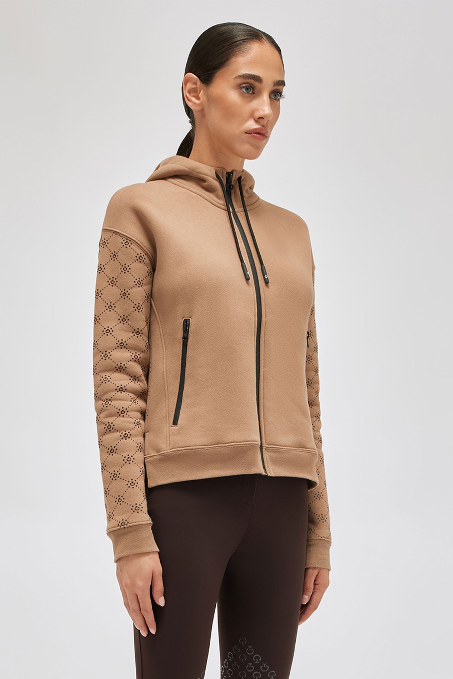Tröjan har utrustats med rymliga fickor, justerbar huva och försluts med en dragkedja fram.