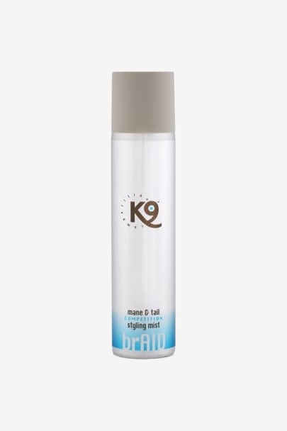K9 Horse brAID är ett hårspray som ger extra stark ”stand up”-effekt som ger dubbel formbar stadga som saknas i hårspray för människor.