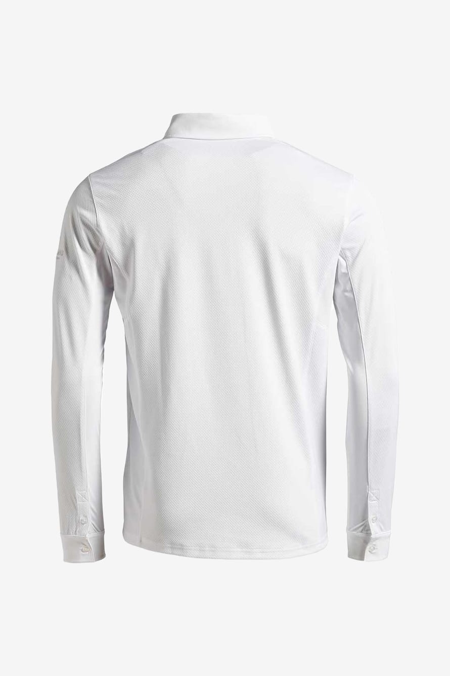 Tävlingsskjorta i klassiskt vitt i herrmodell tillverkad i snabbtorkande, strukturerat material med fukttransporterande egenskaper.