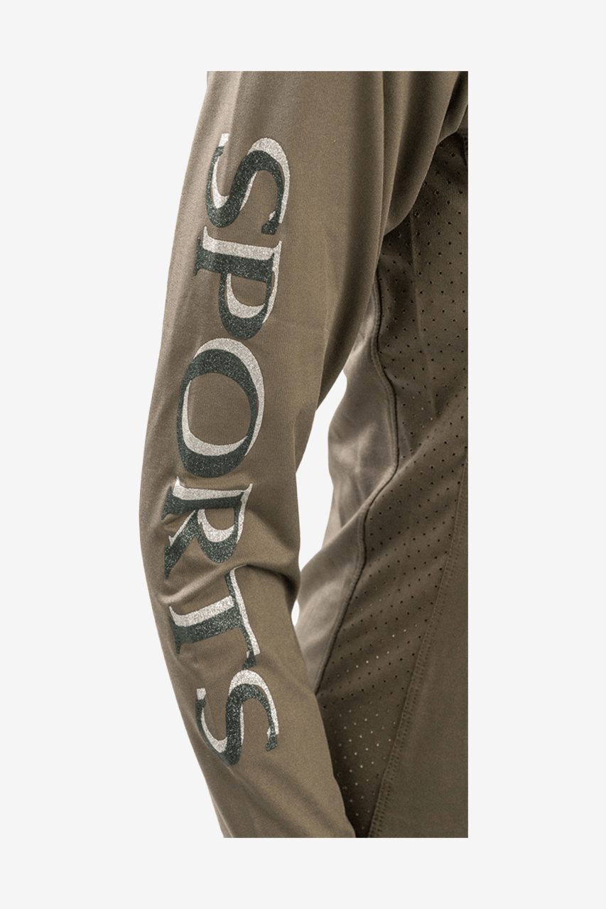 Logga på högerarm i glitter och detaljer i mesh för extra andning.