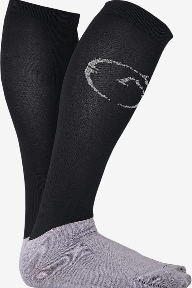 Ridstrumpor från Italienska Vestrum. Tunn och smidig med bra passform. Skaftet är väldigt tunnt för bästa känsla mot hästen. Gjorda av elastisk bomull och polyamid. Stor logo längst upp på skaftet. Grå fot.